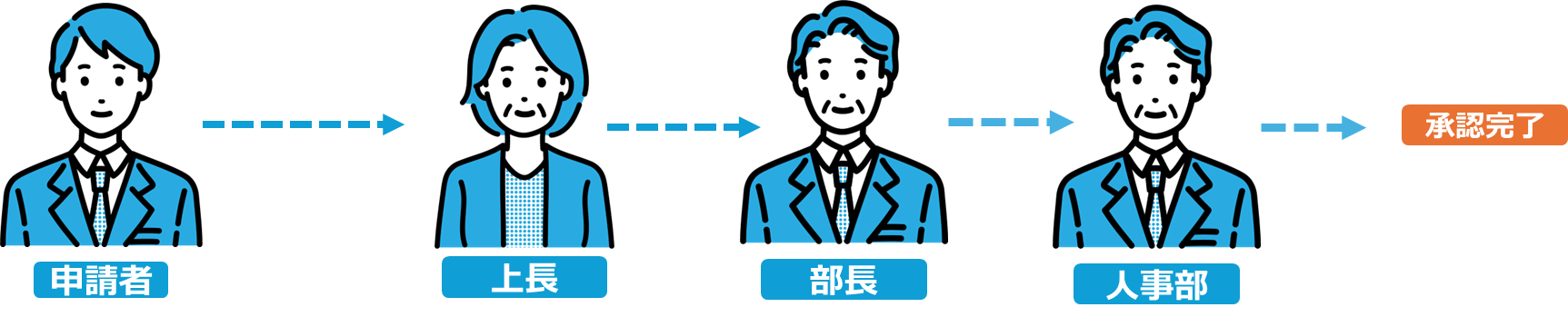 ✅直線型:申請者→上長→部長→人事部など、一方向・順次承認。